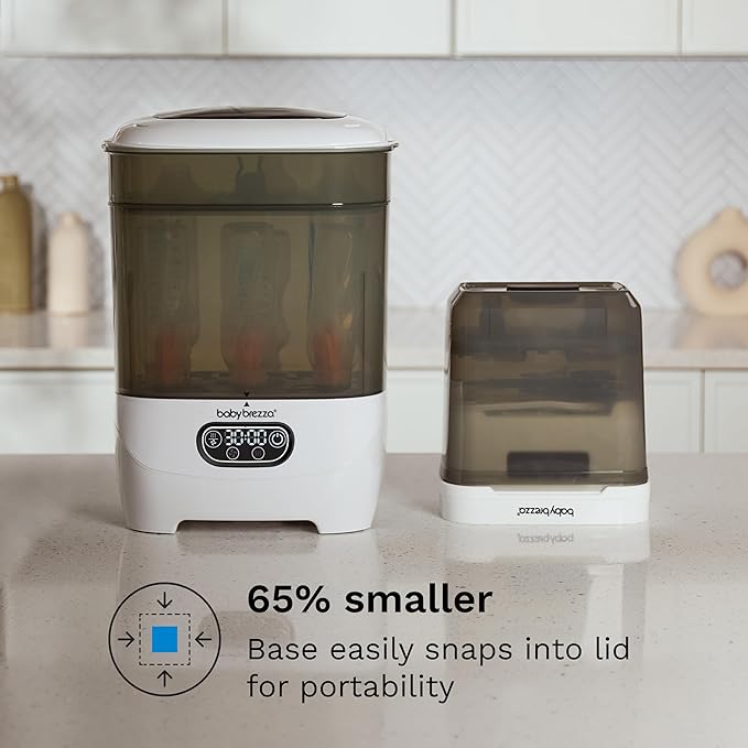 - 65% SMALLER THAN OTHER STERILIZER DRYERS: Ideal for travel, smaller kitchens, bedrooms, nurseries, bathrooms or grandma’s house; Perfect size to sterilize & dry bottles & pump parts wherever you are; Products remain sterilized inside for 48 hours