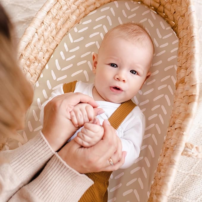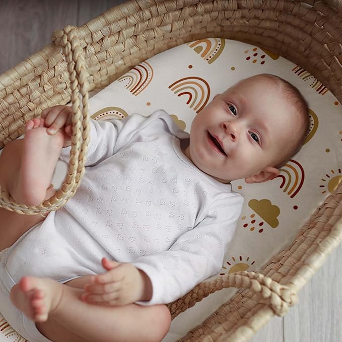 - Snug & Secure Fit: Our baby bassinet sheets feature a 360° premium elastic band for full coverage. Even when babies roll or crawl, the bassinet sheet stay securely fastened to the mattress, ensuring a safe sleep environment.