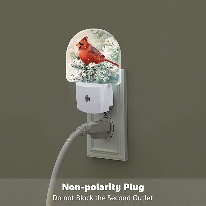 Winter Cardinal Pine Tree Night Light, Christmas Snow Red Cardinal Dusk to Dawn Night Light Plug in,0.5w Energy Saving Sleep Friendly NightLight for Kids Boys Girls Home Decor