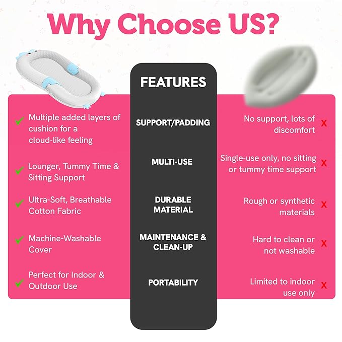 - Travel-light versatility – weighs under 2 lb, packs flat into a tote and features a non-slip base for couch, floor or patio use, giving baby a familiar lounging zone from nursery to grandparents’ house while you leave bulky gear behind.