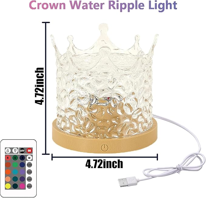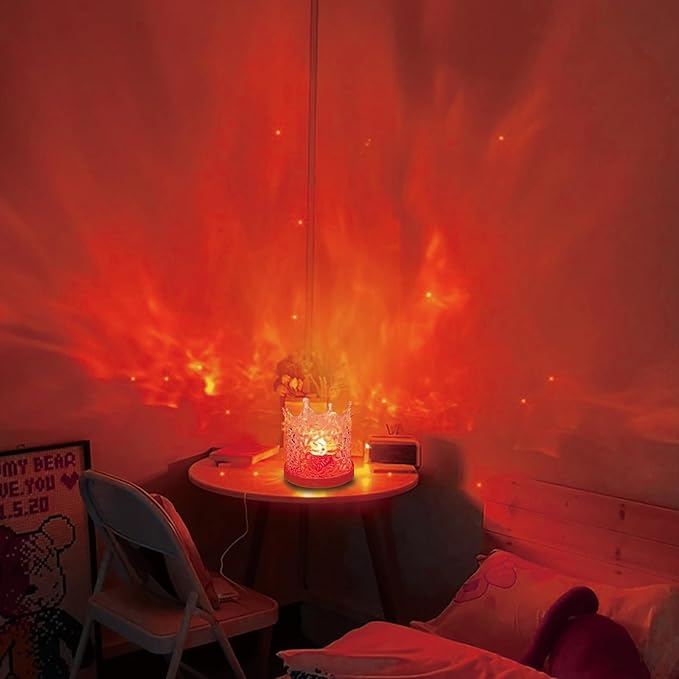 - Multi-function Ambient Lighting - Vcwtty Crown Ocean Waves Projector colored light to ceilings and walls in any smooth space.RGB remote control allows for 16 color variations, 6 levels of brightness adjustment and 4 dynamic modes. Easily customize light color, brightness to create relaxing or imaginative play atmosphere