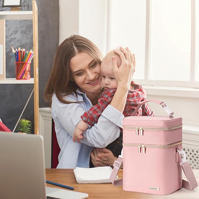 - Convenient Two-Layer Design: With its two-layer design, our breastmilk cooler bag offers maximum versatility. The upper layer is perfect for storing lunch boxes and food, while the lower layer can accommodate up to 6 bottles. Stay organized and keep everything in one place.