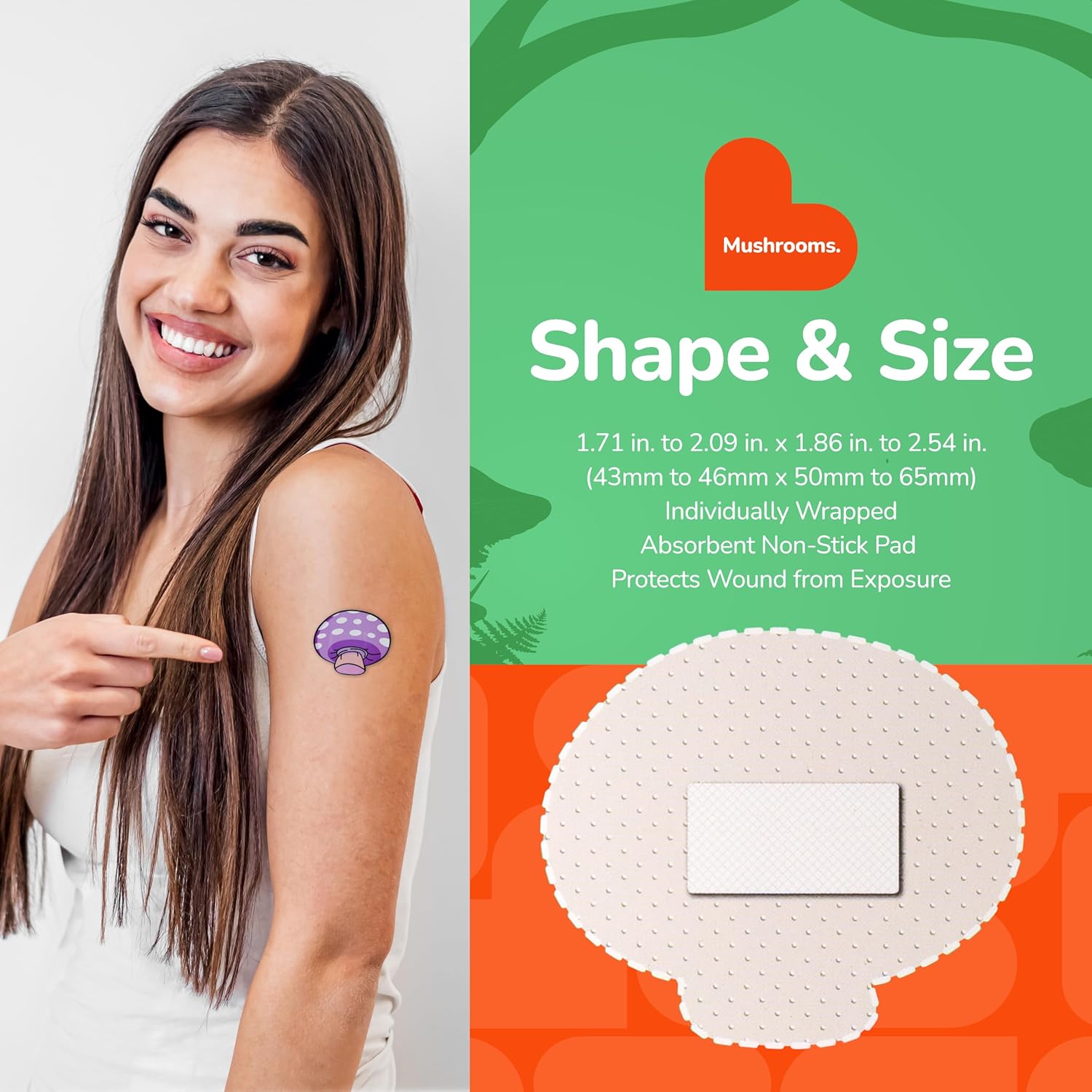 - EASY TO CARRY AND USE: These cute and colorful Mushroom children's bandages are easy to take with you for travel, and easy to store in a home first aid kit; these healing bandages are perfect for school, summer camp, camping trips, weekend getaways and more