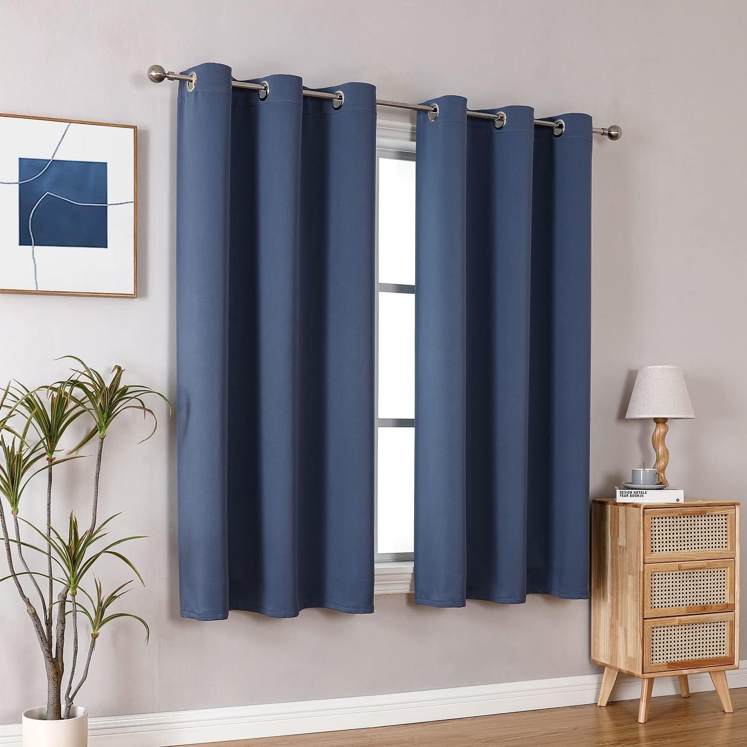 ChrisDowa Blackout Curtains 48 inches Long for Bedroom - 2 Panels Set Grommet Thermal Insulated Room Darkening Curtains for Living Room (Stone Blue, 42 x 48 Inch)