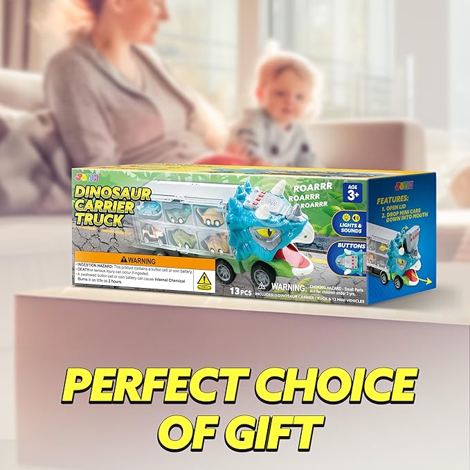 - REALISTIC DINOSAUR TRUCK CARRIER: This lifelike dinosaur truck toy features 7 simulated sounds, including engine start-up, reversing, dinosaur roars, a horn, and an emergency siren. It’s an exciting toy that will not only grab kids' attention but also spark their imagination
