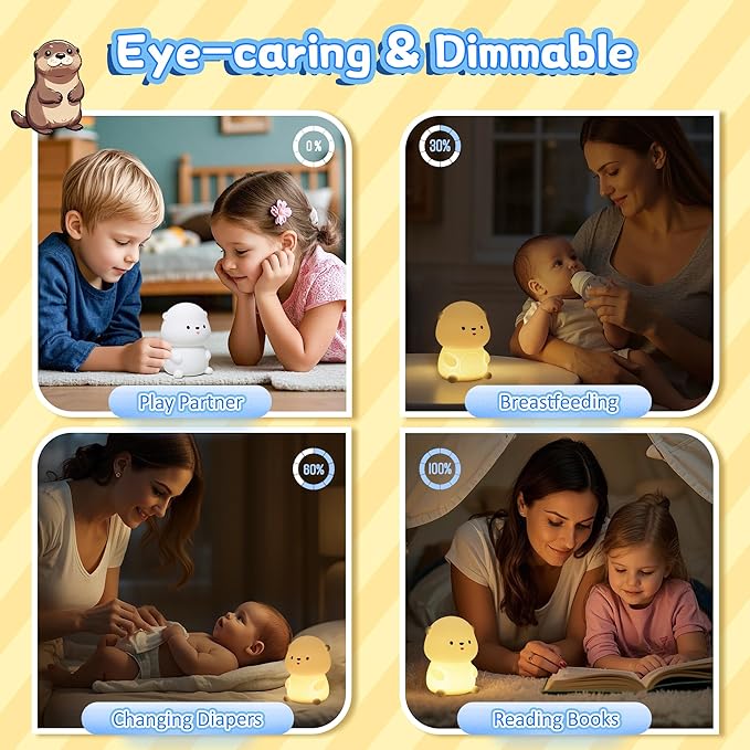 - 【Funny Otter Design】The Otter Night Light features a playful and adorable sea otter design that’s easy for kids to interact with. Made of BPA-free safe silicone material with soft and never too warm light, anti-blue light LED won’t flicker or hurt the eyes of your child, bringing them a nice sleep