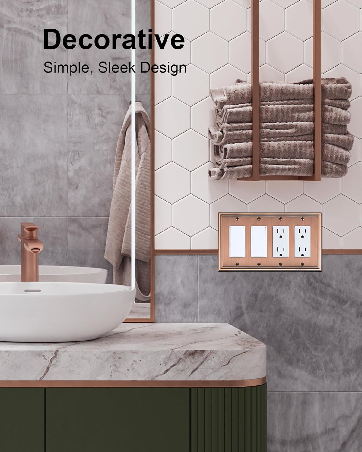 - Wide Application - Versatile and easy to match, These copper wall plates are compatible with Decorator Outlet Receptacle, Roker Switch, Dimmer Switch, GFCI Outlets. Complements any interior style, whether your decor is modern, traditional, or contemporary, this decorative switch plate cover seamlessly blends in and glams up your wall.