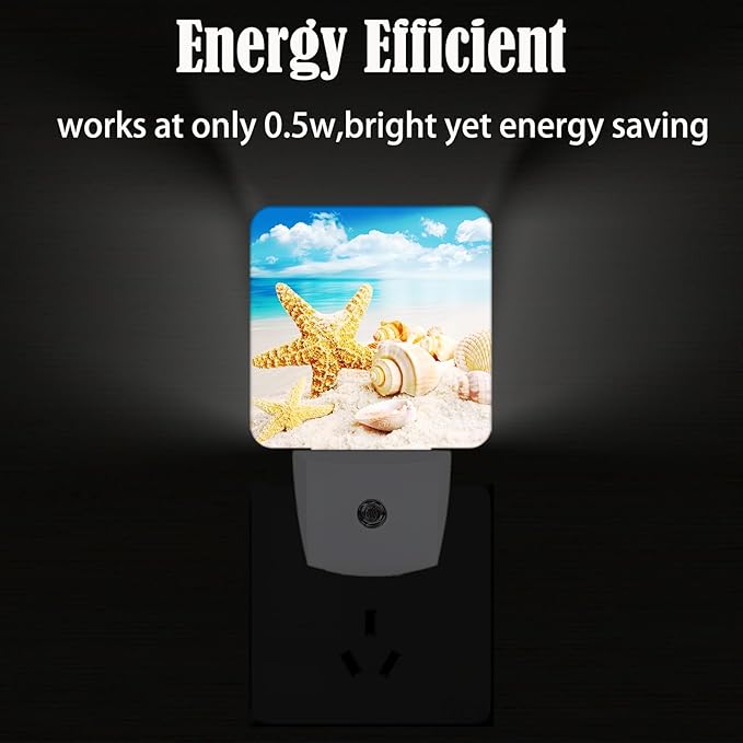 Beach Shell and Starfish Conch Night Light,Plug-in Nightlights Auto Sensor Night Lamp Dusk-to-Dawn Lamp Home Decor for Nursery Children Girls Boys