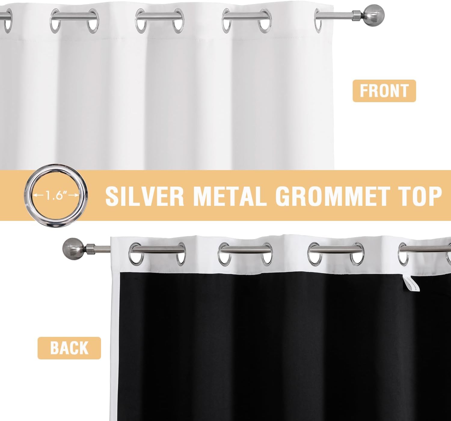 - SET DETAILS: Set of 2 total blackout curtain panels per package. Each lined curtain measures 60 inch wide by 63 inch long with 10 silver metal grommets (1.6 inch inner diameter) on top, easy to install and slide.