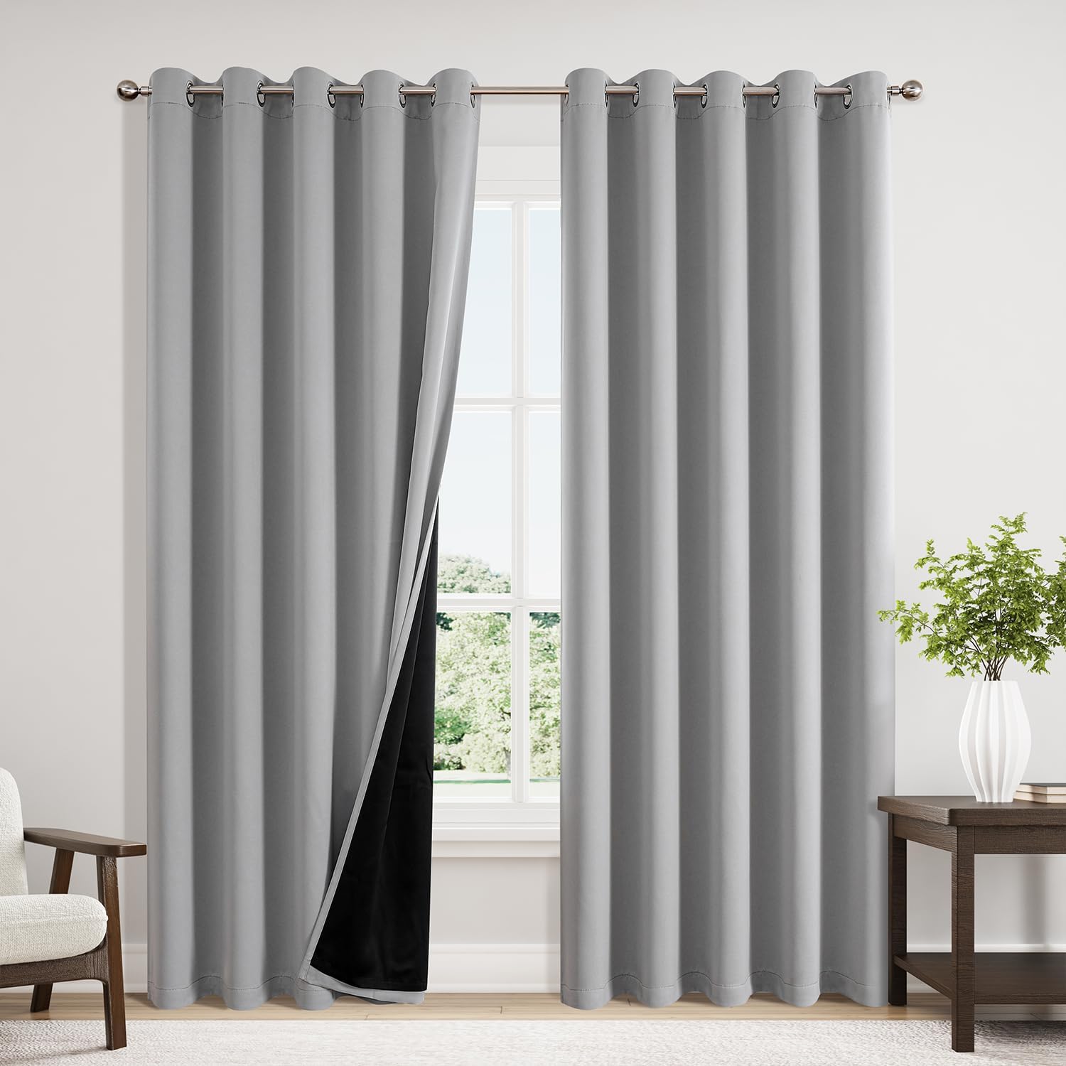 ChrisDowa 100% Blackout Curtains 84 inch Long for Bedroom with Black Liner, Extra Wide 2 Thick Layers Total Blackout Thermal Insulated Grommet Window Curtains 2 Panels Set (Light Grey, 60 x 84 Inch)