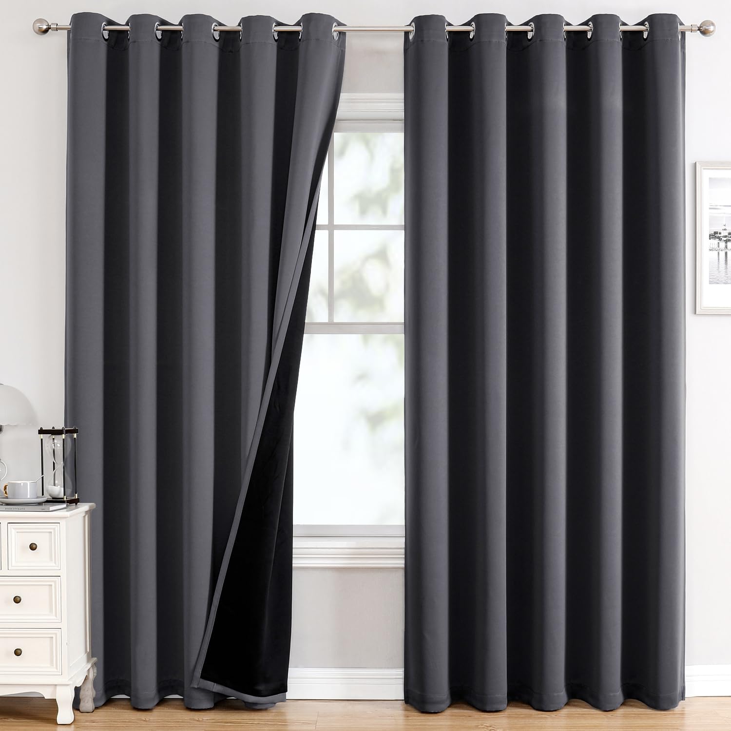 ChrisDowa 100% Blackout Curtains 84 inch Long for Bedroom with Black Liner, Extra Wide 2 Thick Layers Total Blackout Thermal Insulated Grommet Window Curtains 2 Panels Set (Dark Grey, 60 x 84 Inch)