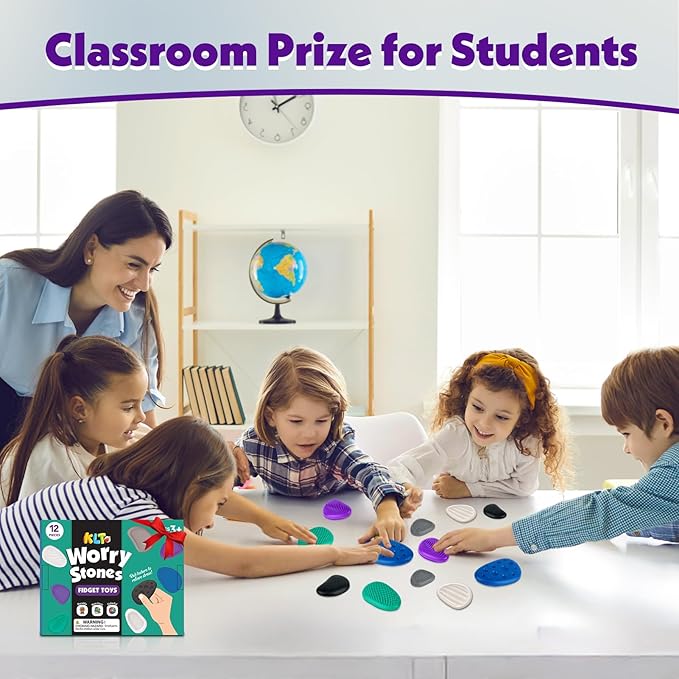 - Multi-functional Fidget Toys Sensory Stone: Bulk prize box toys and fidget party favors for classroom. These rubber worry stones are good non-noise fidget desk toys for students and staff to relax and refresh mind. Good as goodie bag stuffers, preschool classroom prizes, kids birthday gifts, fidget party favors, Christmas stocking stuffers, and carnival prizes. It also can provide silent entertainment for boys and girls in cars, airplanes, home, restaurants, libraries and more
