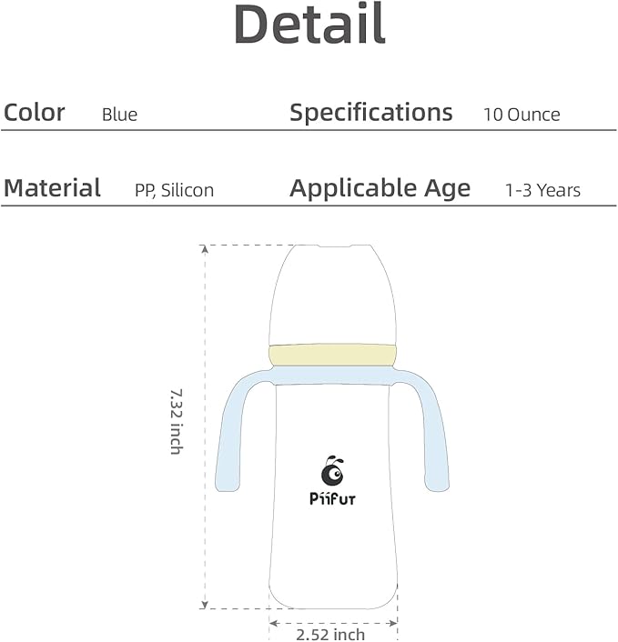 Piifur Sippy Cups for Toddlers 1-3 No Spill with 2 Straw Replacement Sets Water Bottle with Handle 10 Ounce Blue