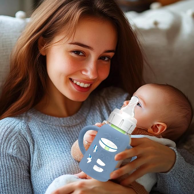 - Unique Designed for Baby Bottles - The silicone sleeves for Dr. Brown's Baby Bottles can against drop down,bumps and scratches. These are a must essential product for using glass baby bottles. They provide a more sturdy protection for glass baby bottle from breaking if dropped, which also unique handle design shape make it easier to grip and hold