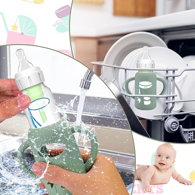 - Comfortably Use of Bottles - The fashion design silicone sleeve for Newborn baby bottles help grip for mom and also helps baby hold his bottle when it comes time for them to hold it . These bottle handles can be used for clean by dishwashers ,easy to clean.The silicone sleeve for Dr. Brown's bottle comes in cute colors and an adorable little cut out, so that you can easy to know amount of milk left