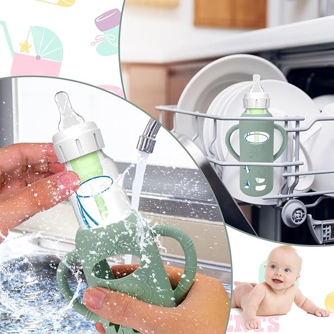 - Comfortably Use of Bottles - The fashion design silicone sleeve for Newborn baby bottles help grip for mom and also helps baby hold his bottle when it comes time for them to hold it . These bottle handles can be used for clean by dishwashers ,easy to clean.The silicone sleeve for Dr. Brown's bottle comes in cute colors and an adorable little cut out, so that you can easy to know amount of milk left