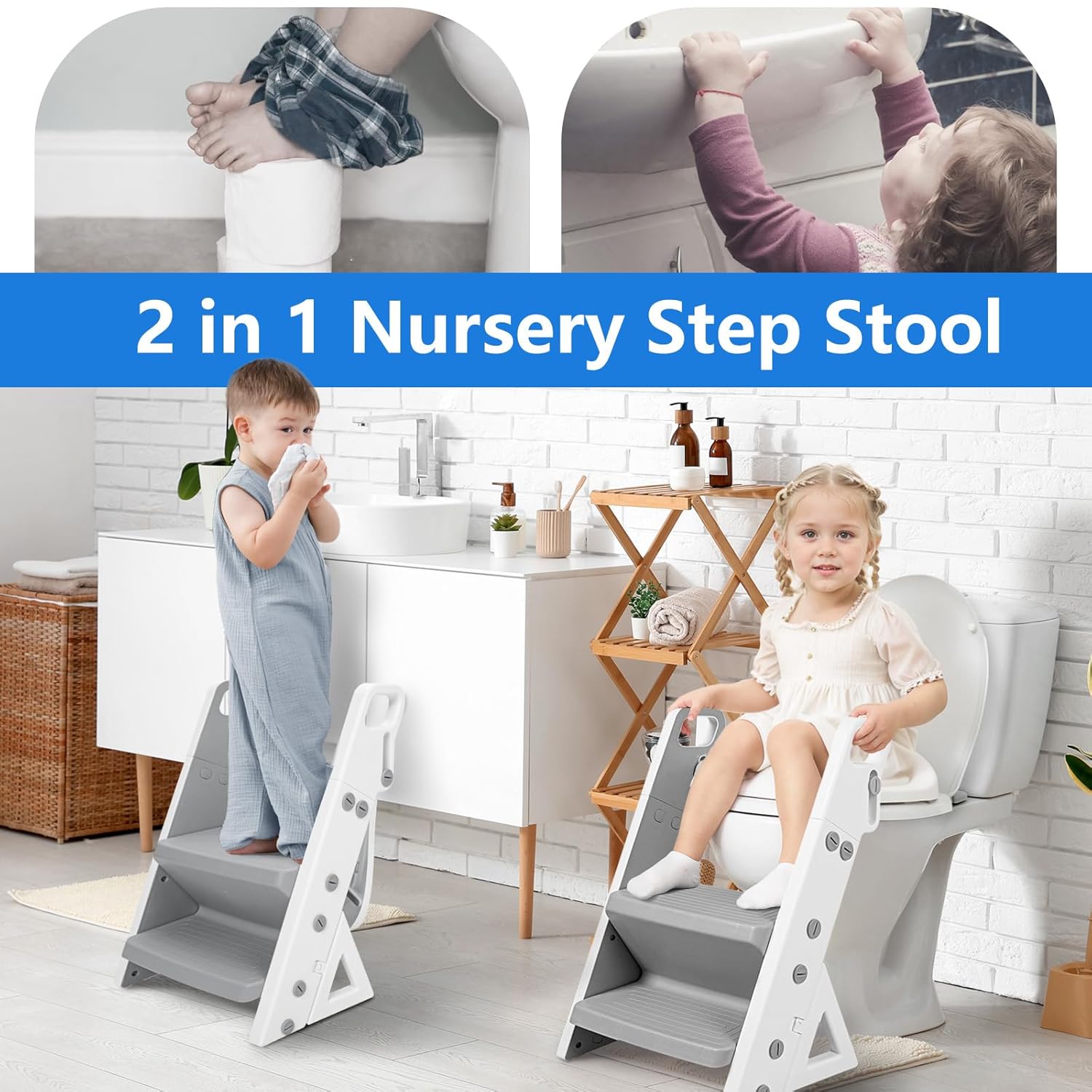 - Innovative 2 in 1 Functionality: The baby potty training toilet can not only help baby to complete toilet training successfully, but also can be used as a stepping stool to solve the problem of not being able to reach the sink and kitchen countertop due to lack of height