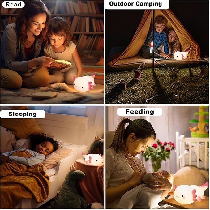 - Perfect Axolotl gifts:The Very Super Cute Night Light Is Used As A Bedside Lamp Not Only For Breastfeeding, Reading, And Preventing Falls During The Night, But Also As A Camping Light, Emergency Light, And Flashlight. Best Gift For Your Friends,Kids Or Yourself. Also A Ideal Gift For Valentine'S Day, Birthday,Children'S Day,Halloween,Christmas And New Year. Suitable For Outdoor Camping, Bedroom,College Dormitory,Office,Party Decoration. Also Very Suitable For New Mommy As Nursery Light