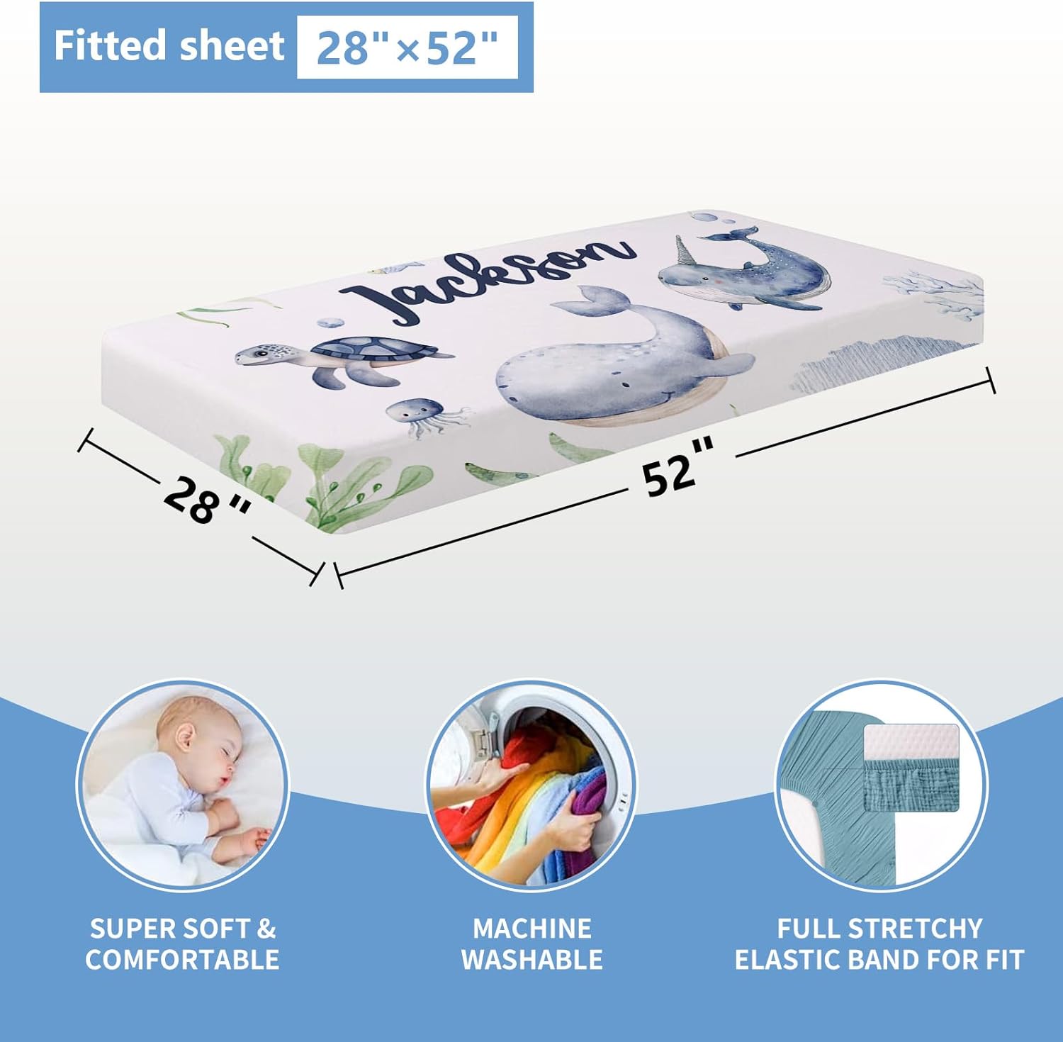 Personalized Baby Crib Bedding Set, 5 Pcs Custom Name Baby Bedding Set, Double Layer Nursery Bedding Set, Ocean Animal Baby Crib Set for Girls Boys, Gift for Toddler Infant Baby New Parents
