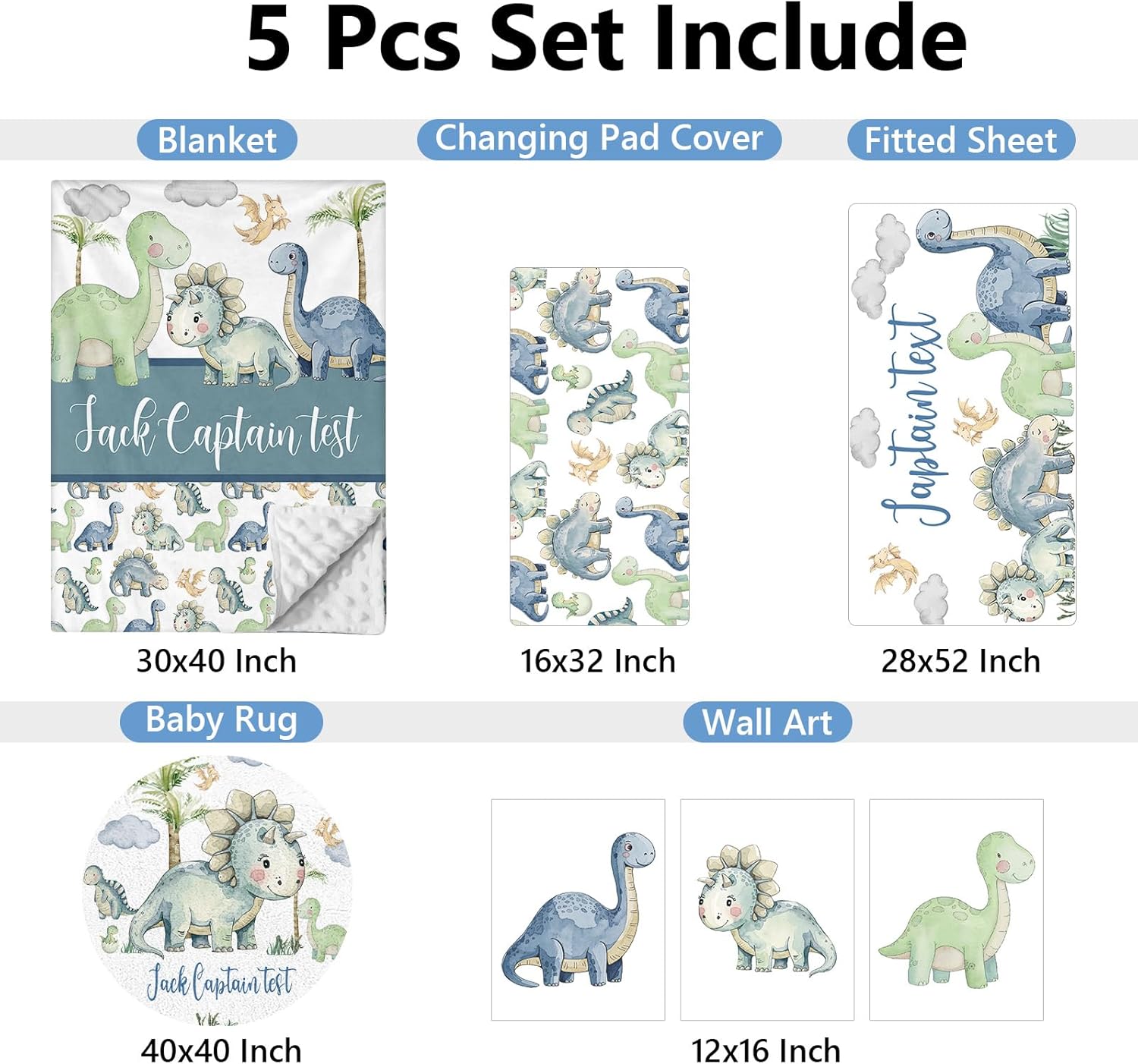 - Included Components : Baby Rug, Changing Pad Cover, Crib Fitted Sheet, Dotted Backing Blanket, Wall Art