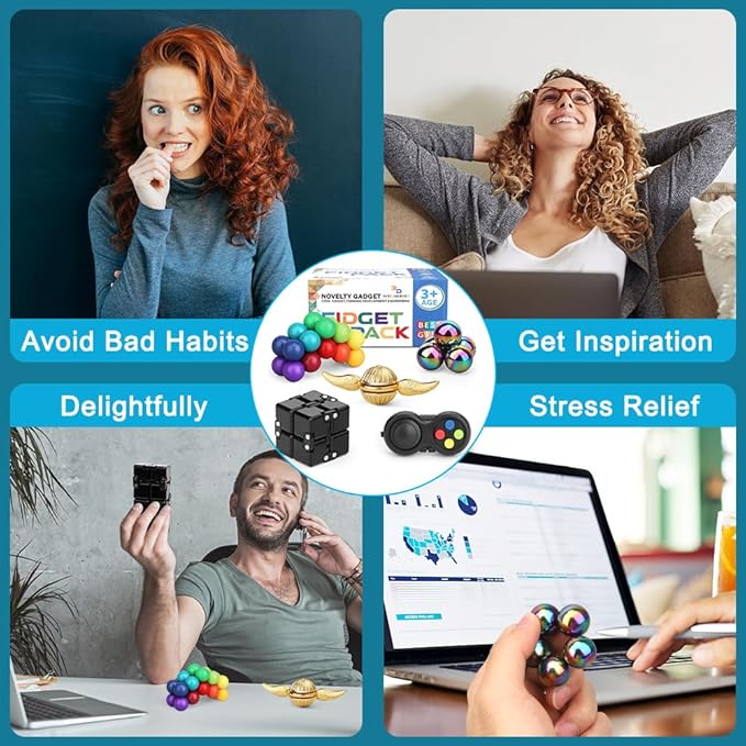 - The Original Fidget Bluk: This 9-piece mesmerizing toys are ergonomically designed for easy portability. Stimulate your brain, body, and imagination anytime, anywhere, and enjoy hours of creative play