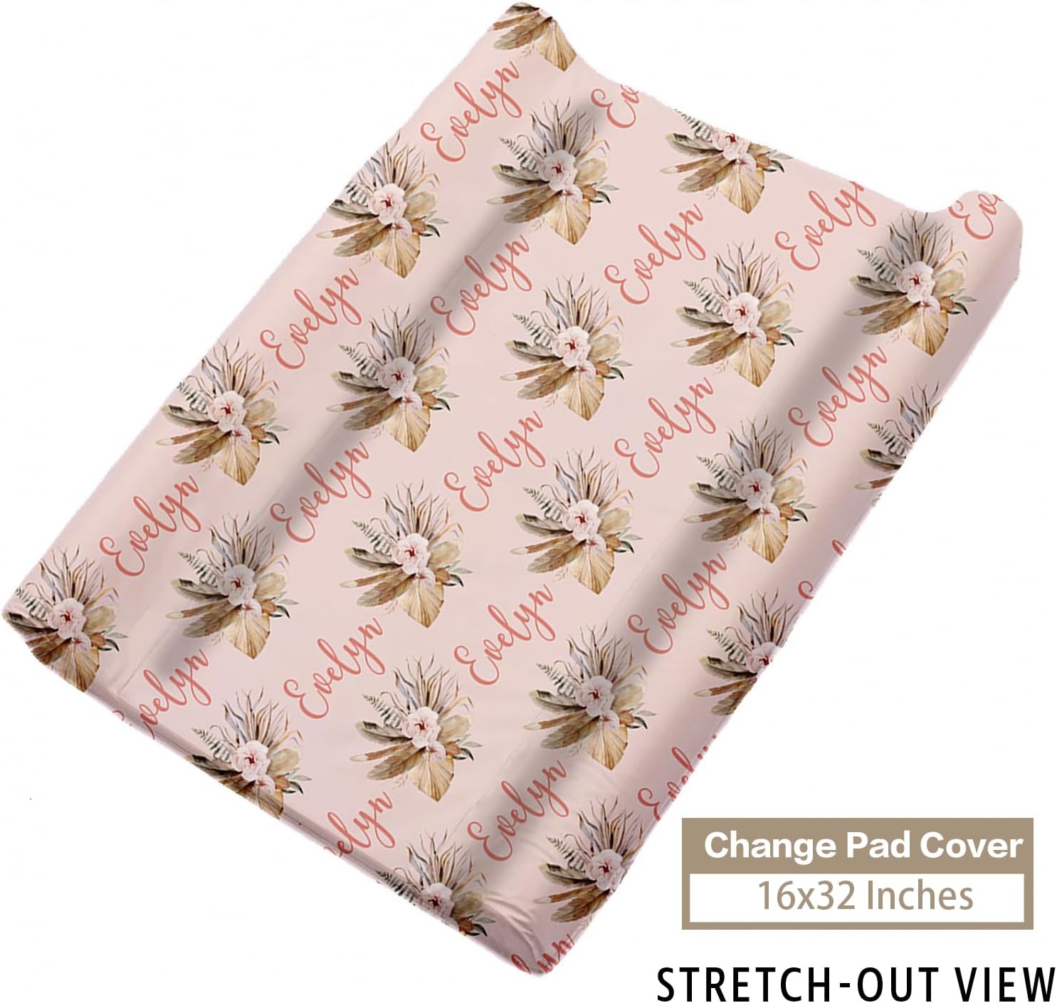 Custom Name Crib Bedding Set - Bohemian Flowers Design, Personalized Baby Nursery Bedding 3-Piece Set– Soft Blanket, Fitted Sheet, Changing Pad Cover – for Newborns Girls Nursery Gifts