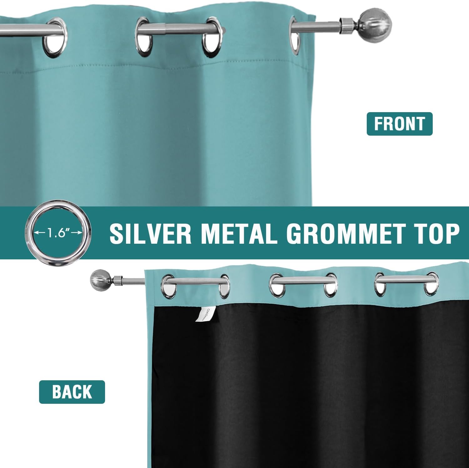 ChrisDowa 100% Blackout Curtains 84 inch Long for Bedroom with Black Liner, Extra Wide 2 Thick Layers Total Blackout Thermal Insulated Grommet Window Curtains 2 Panels Set (Aqua, 60 x 84 Inch)
