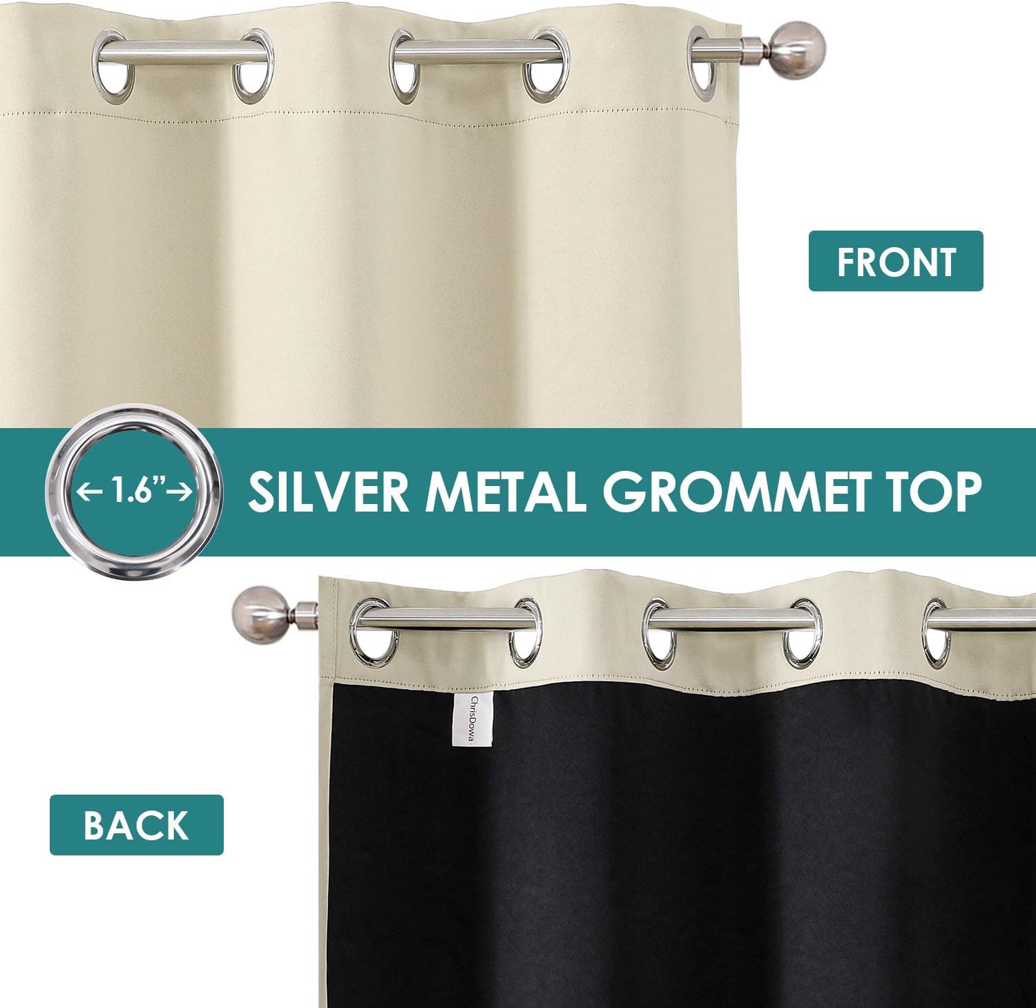 - SET DETAILS: Set of 2 total blackout curtain panels per package. Each lined curtain measures 52 inch wide by 102 inch long with 8 silver metal grommets (1.6 inch inner diameter) on top, easy to install and slide.