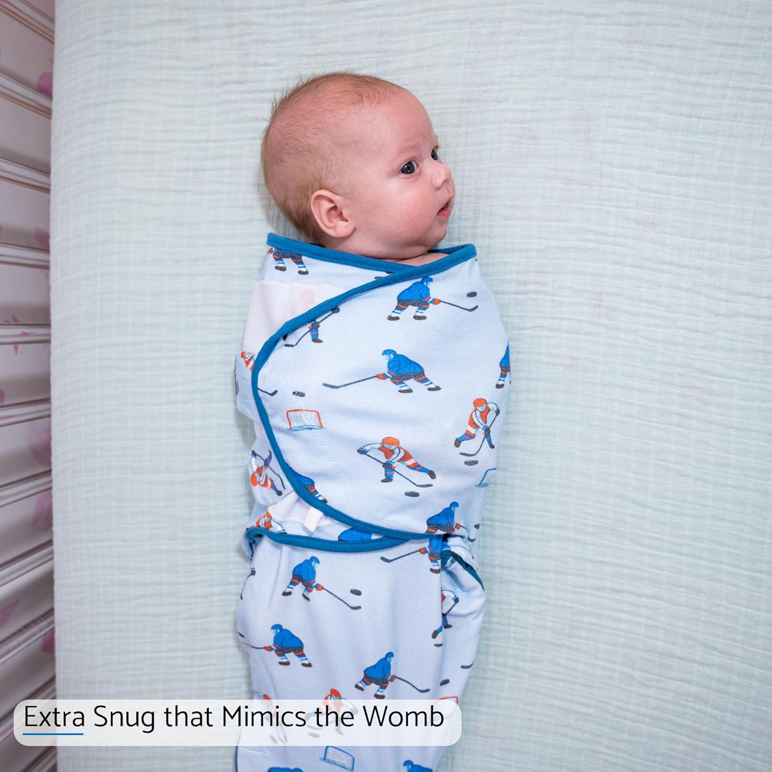 LollyBanks Baby Swaddle, 100% Organic Cotton Newborn Boy Swaddle Sack 0-3 Months, Newborn Baby Swaddle Blanket Wrap with Easy Change Zipper, Baby Registry Must Haves (Ice Hockey)