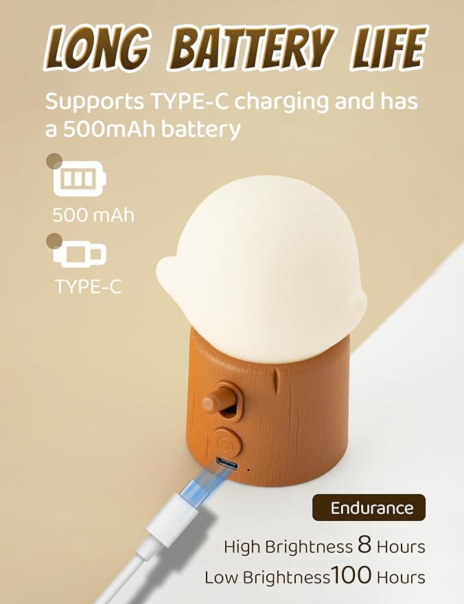 - 【SAFE & RECHARGEABLE】The cute ghost light is Type-C charging, very convenient to use it wirelessly. Charging time is 1.5 hours, can be used for 100 hours, fully meet the needs of daily life. Silicone candlelight mode, the night light does not risk erosion or leakage of harmful substances, very environmentally friendly.