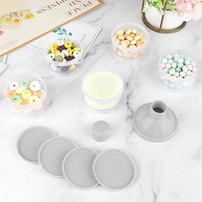- Capacity - 5 layers design. You can put quantity of baby formula on each layer. A total of 5 layers of pre measured milk powder or food can be placed. Very pratical formula container for on the go.