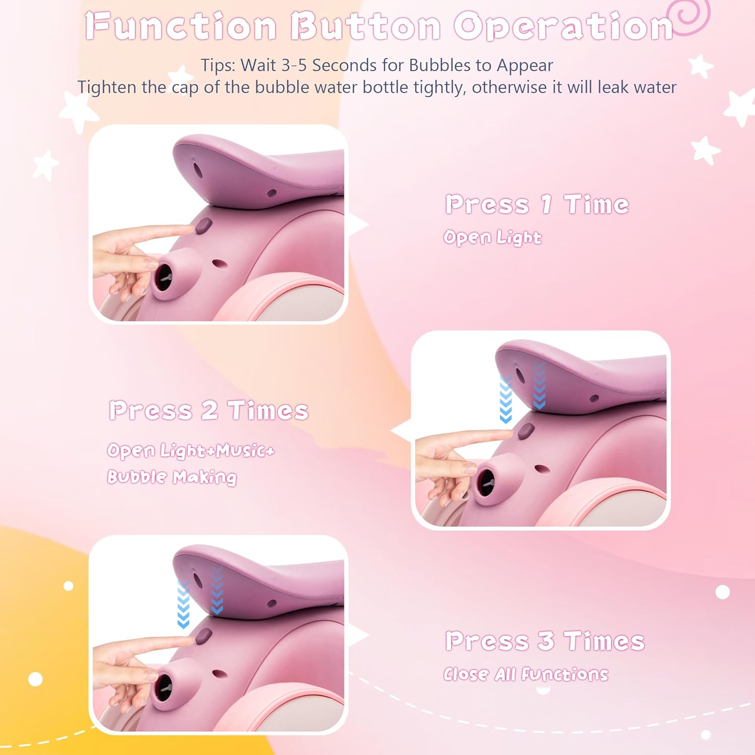- Multiple pleasures: 1 car with 4 modes for multiple uses value for money 1. Sliding walking mode 2. Electric self driving mode 3. Remote brake mode 4. Bubble blowing mode