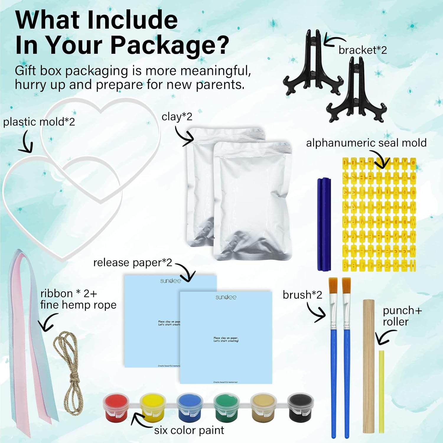 - Handprint Set:The Handprint set consists of soft, baby-safe clay that is easy to use - there is no need to mix or bake, just press your baby's hand or foot into the clay to form an imprint and allow air to dry to form a detailed impression.
