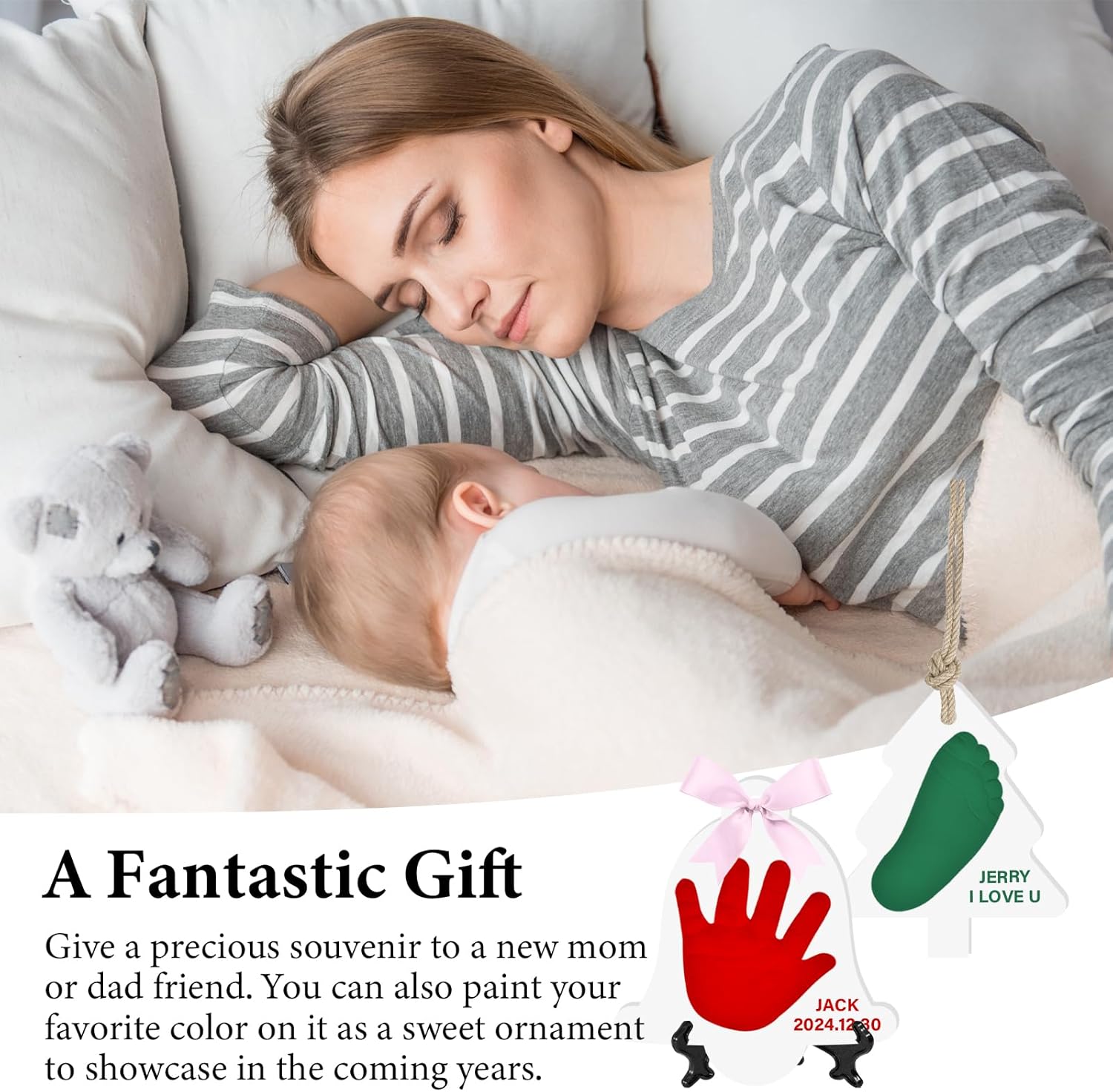 Baby Handprint Footprint Keepsake Ornament Kit, Personalized Baby Foot Printing Kit for Newborn Clay Impression Handmade DIY Imagination to Create