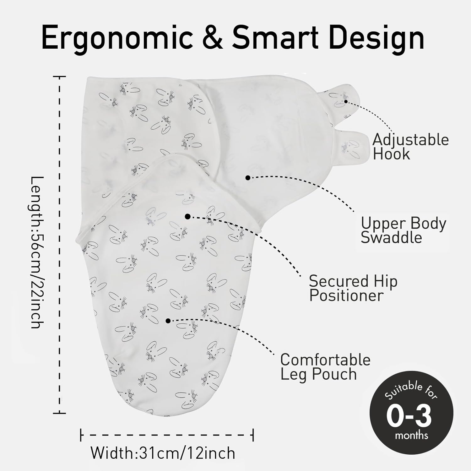 GLLQUEN BABY 3 Pack Newborn Swaddle - Baby Swaddle 0-3 Months for Baby Boys and Grils, Adjustable Sleep Sack for Newborns, Stripes & Bunnies, Swaddling Blankets