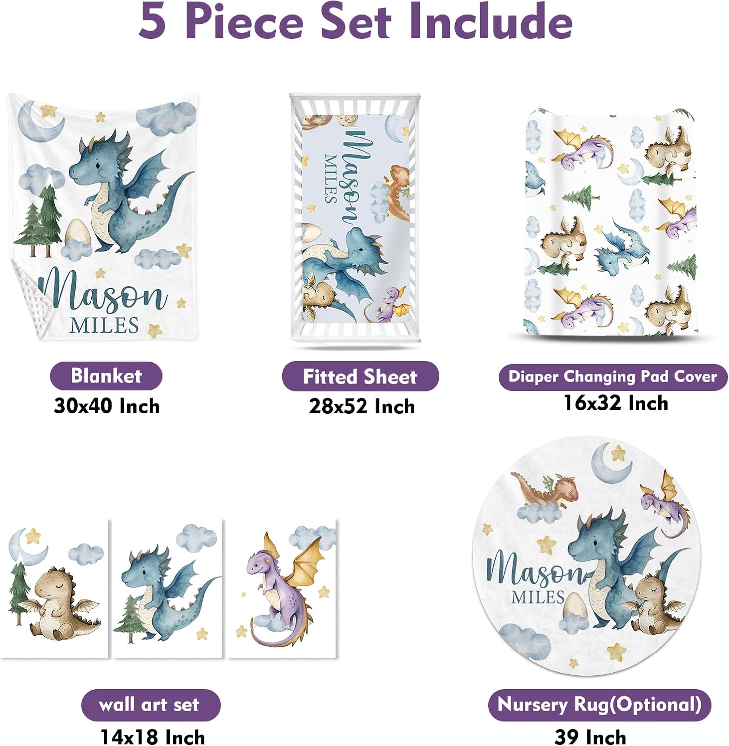- Complete Nursery Set: Transform your baby's nursery into a dreamy and enchanting space with our 5-piece baby crib set. It includes a baby blanket, crib fitted sheet, baby rug, diaper changing pad cover and a set of coordinating wall art to coordinate your nursery décor effortlessly.