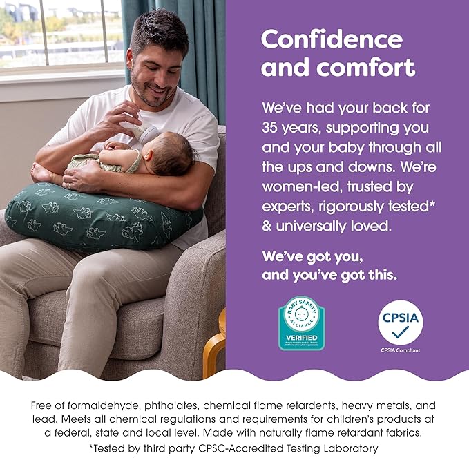 - 35 Years of Confidence: Better connecting babies and moms since 1989 with breastfeeding pillows, baby carriers and other baby essentials so you can worry less and enjoy more; The first brand certified by the JPMA in the Nursing Pillow category for meeting the highest standards in safety, performance and quality; Meets and exceeds standards for ASTM F3669 Consumer Safety Specification for Nursing Pillows and 16 CFR 1242 safety standard for nursing pillows, so you can have peace of mind