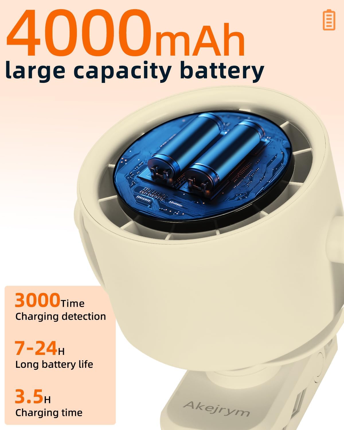 - 【Ultra-long Battery Life】Akejrym portable stroller fan is equipped with a 4000mAh large-capacity battery that lasts 7-24 hours in the wind (depending on speed) and offers a 1M USB charging cable for easy charging anytime, anywhere, regardless of distance. It can be charged by computer, mobile power supply, car charger, etc.