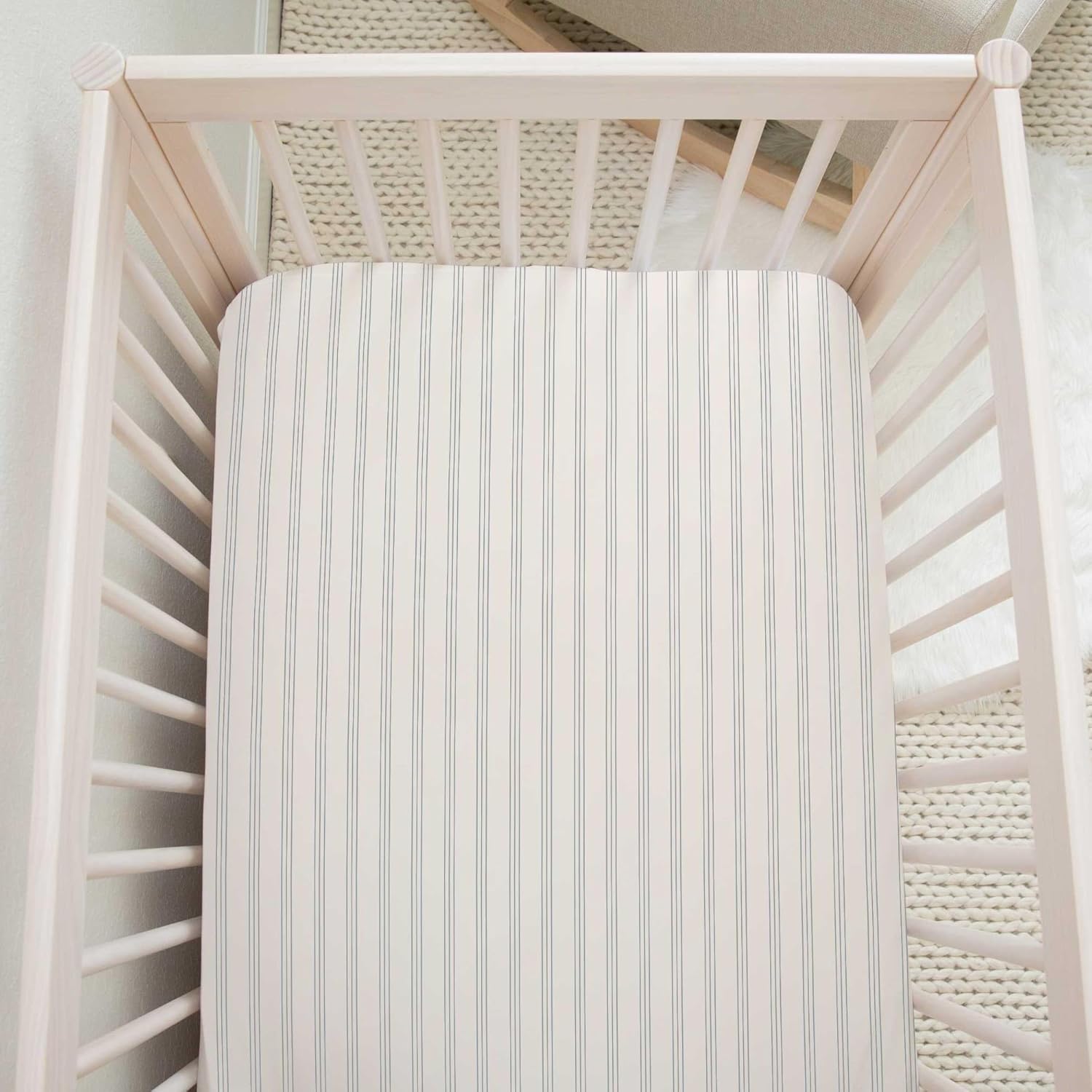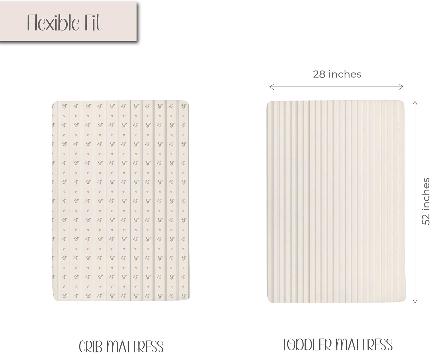 - Linear Berry Leaf Design: Elevate your baby boy's nursery with the Ely’s & Co. Fitted Crib Sheet Set– a premium 2 pack of baby fitted crib sheets crafted from 100% jersey cotton. This set features a soft ivory base with a delicate linear berry leaf and stirpe print, adding a touch of vintage charm to the sleep environment.