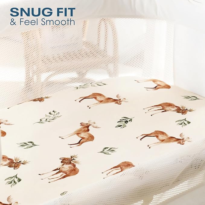 GRSSDER Ultra Soft Bassinet Sheets 2 Pack, Stretchy Breathable Knit Bassinet Mattress Sheets for Baby, Universal Fitted Baby Cradle Moses Basket Oval Rectangle Mattresses Safe and Snug, Animals Print