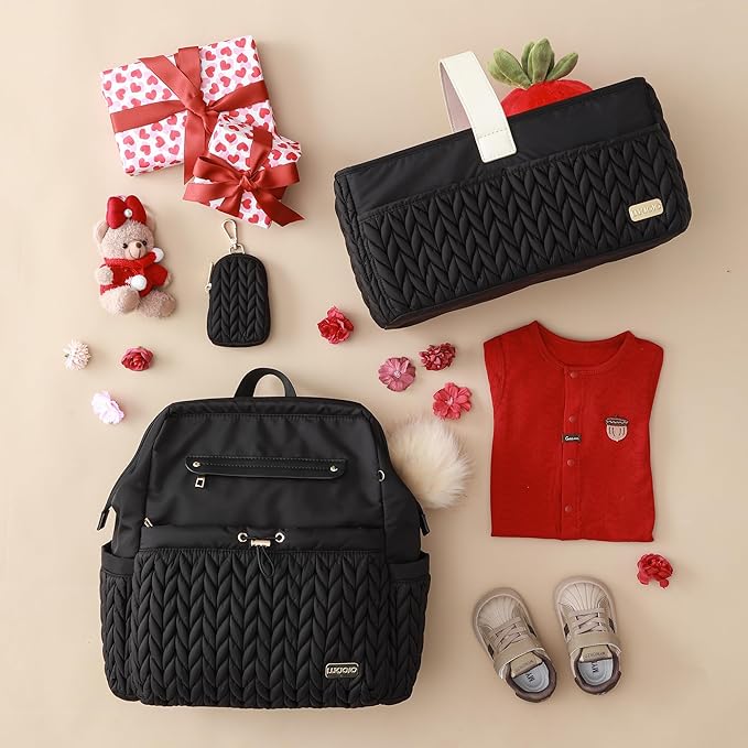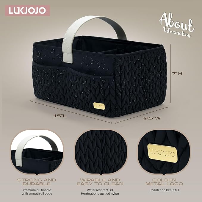 - *Elegance Meets Luxury: This portable baby diaper caddy(PATENT) is crafted using water resistant nylon along with a 3D herringbone quilting and leather handle bring a chic and modern touch. This diaper organizer caddy to make diaper changing a simple and joyful experience for both parent and baby. The black,dusty rose,ash blue, beige and mint green is available.