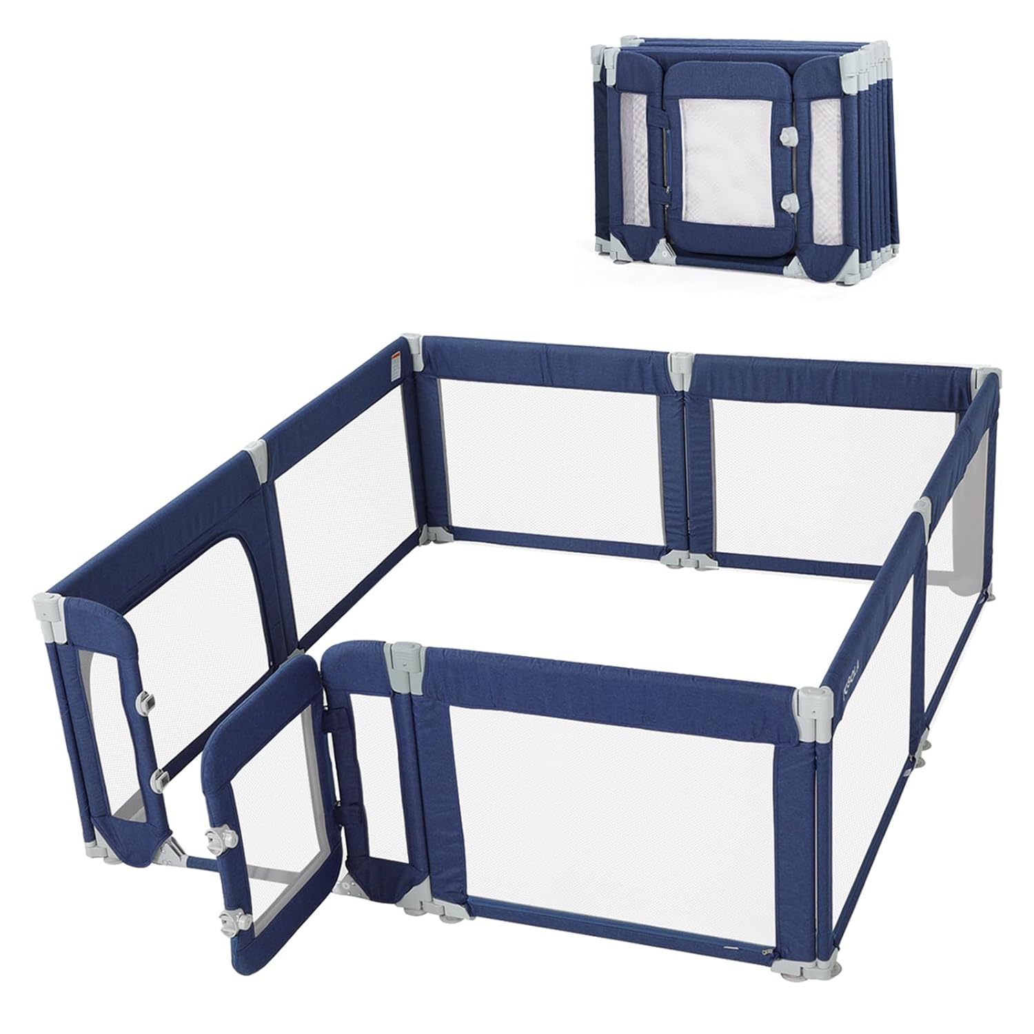 - [VERSATILE & AJUSTABLE]: This foldable baby playpen is made up of 8 panels that can be easily arranged into various shapes to suit your space at your will. Plus, with a baby door and two zipper doors, your child can easily enter and exit.It’s not just about keeping your child safe,it’s about giving them the freedom to explore while you relax!