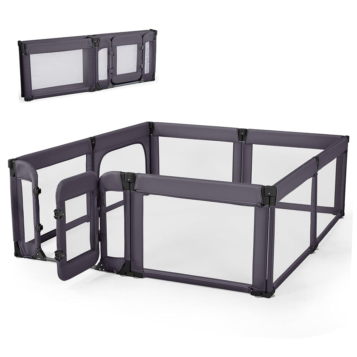 - [VERSATILE & AJUSTABLE]: This foldable baby playpen is made up of 8 panels that can be easily arranged into various shapes to suit your space at your will. Plus, with a baby door and two zipper doors, your child can easily enter and exit.It’s not just about keeping your child safe,it’s about giving them the freedom to explore while you relax!