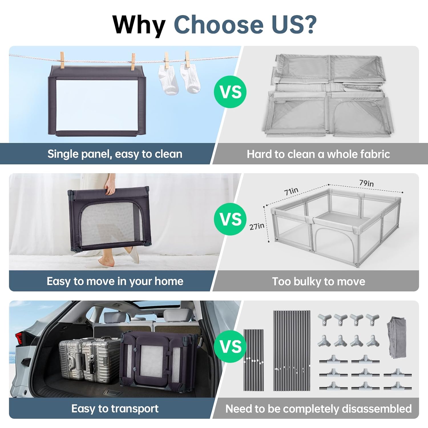 - [Extra Large Space]: With dimensions of 79 x 71 inches,the baby playpen provides spacious space for both parents and toddlers, ensuring a safe and fun environment for your baby to explore whether indoors or outdoors.