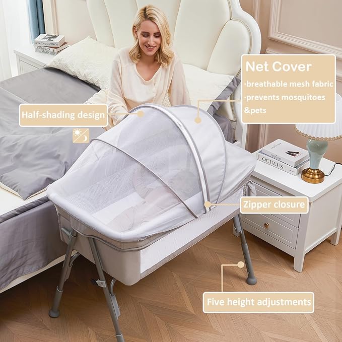 - [ 5-LEVEL HEIGHT ADJUSTMENT ]: Customizable to match most adult beds (US standard), making nighttime feedings and checks easier—no more straining your back.