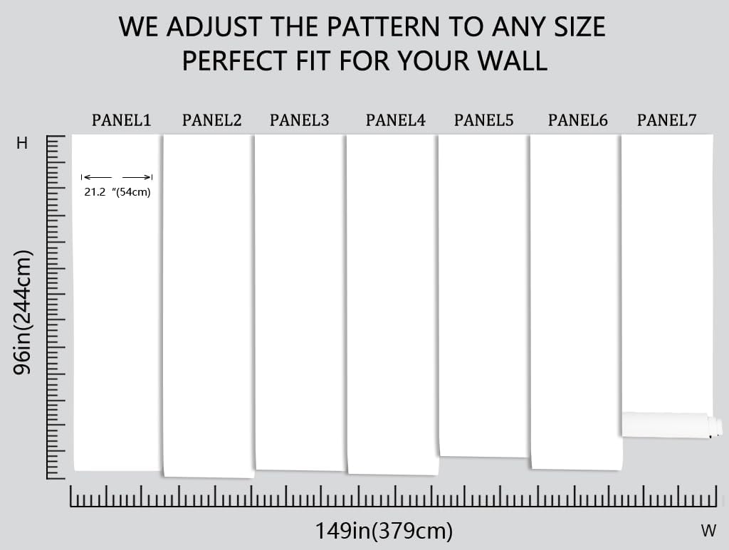 - Before purchasing, you need to measure the size you need, our mural is 96 inches high and 149 inches wide, in order to facilitate long-distance transportation, we divide the width of the mural into six pieces of 21.2 inches each, with a numerical serial number underneath each piece for easy installation!