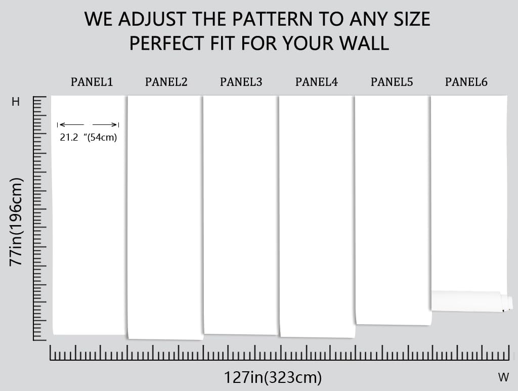- Before purchasing, you need to measure the size you need, our mural is 77 inches high and 127 inches wide, in order to facilitate long-distance transportation, we divide the width of the mural into six pieces of 21.2 inches each, with a numerical serial number underneath each piece for easy installation!
