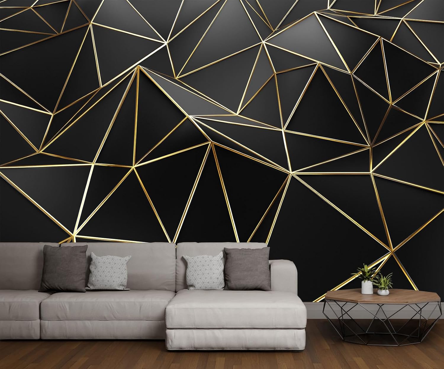 Black Geometric 3D Mural Wallpaper for Bedroom Living Room TV Background Home Decorations(Not Self-Adhesive)