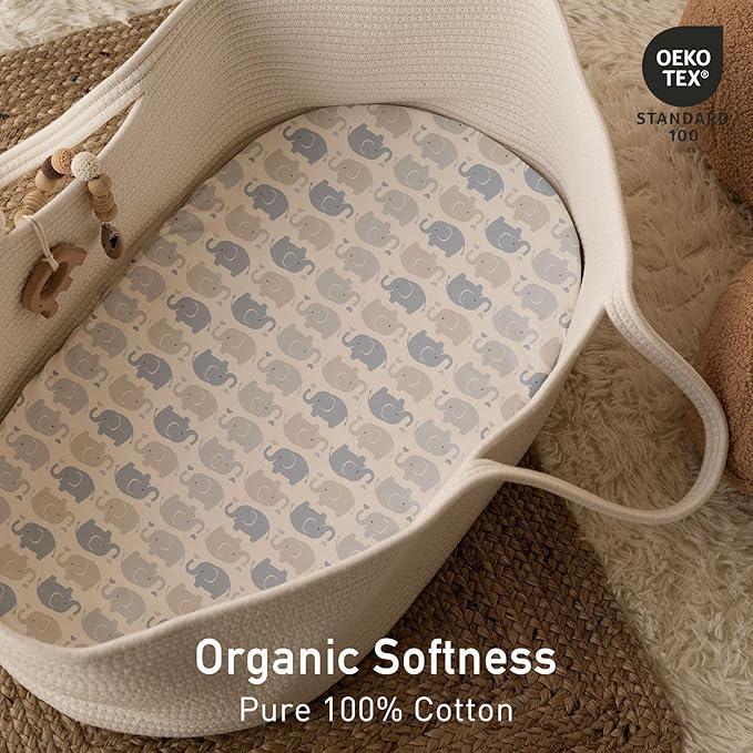 - Ultra-Soft Organic Cotton: Wrap your little one in the finest sleep with our 100% organic cotton bassinet sheets. Ultra-soft, cozy and breathable, these bassinet fitted sheets are gentle on your baby's delicate skin, ensuring a comfortable and restful night's sleep. Rest assured, every product meets the OEKO-TEX Standard 100 and is safe for babies