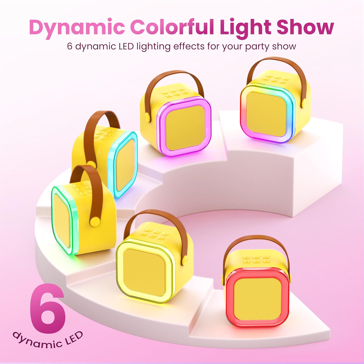 Karaoke Machine for Kids Adults, Portable Bluetooth Mini Karaoke Microphone Singing Speaker Karaoke Player with 2 Wireless Mic,Kids for All Smartphones,Birthday, Family,Home Party(Yellow)